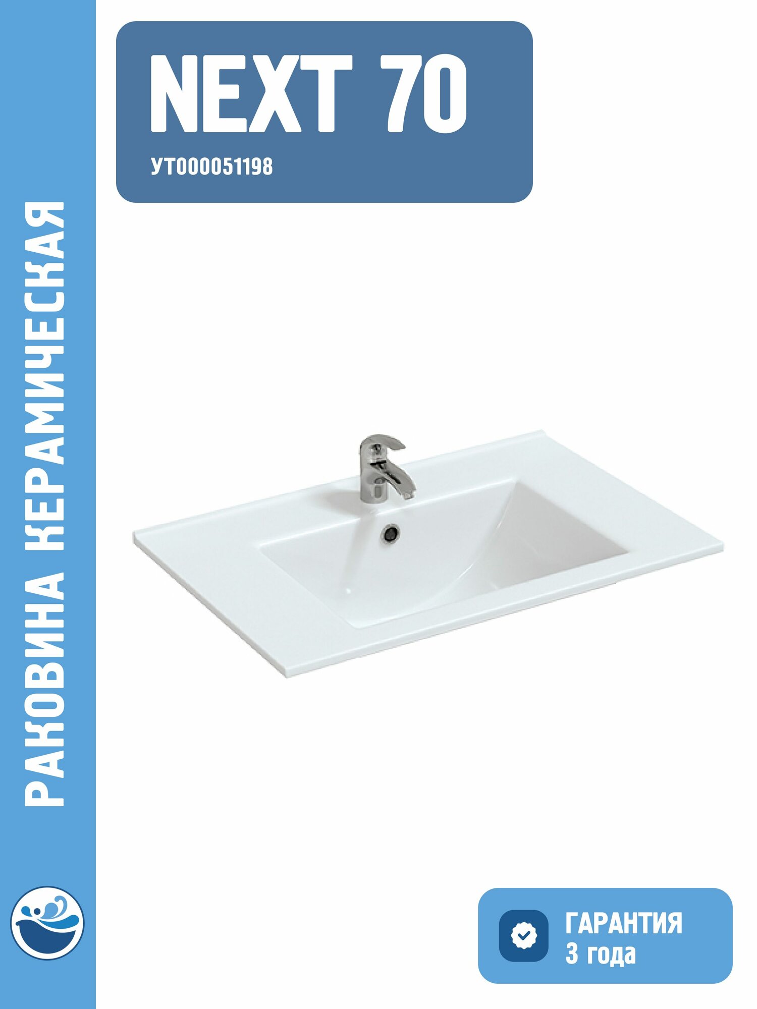 Раковина керамическая Next-70, без тумбы информация: