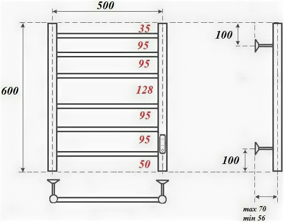 Полотенцесушитель электрический 600х532 диммер справа Point Серия 10 П6 PN10856W информация: