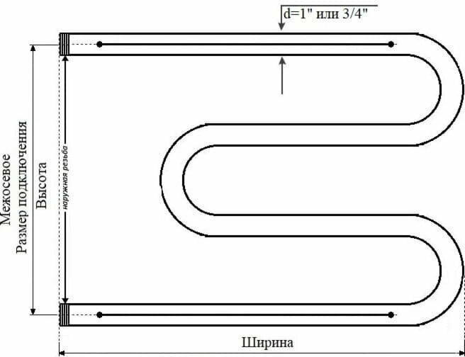 Полотенцесушитель АКВАДРАЙВ водяной М-образный 3/4" 500х400 сталь