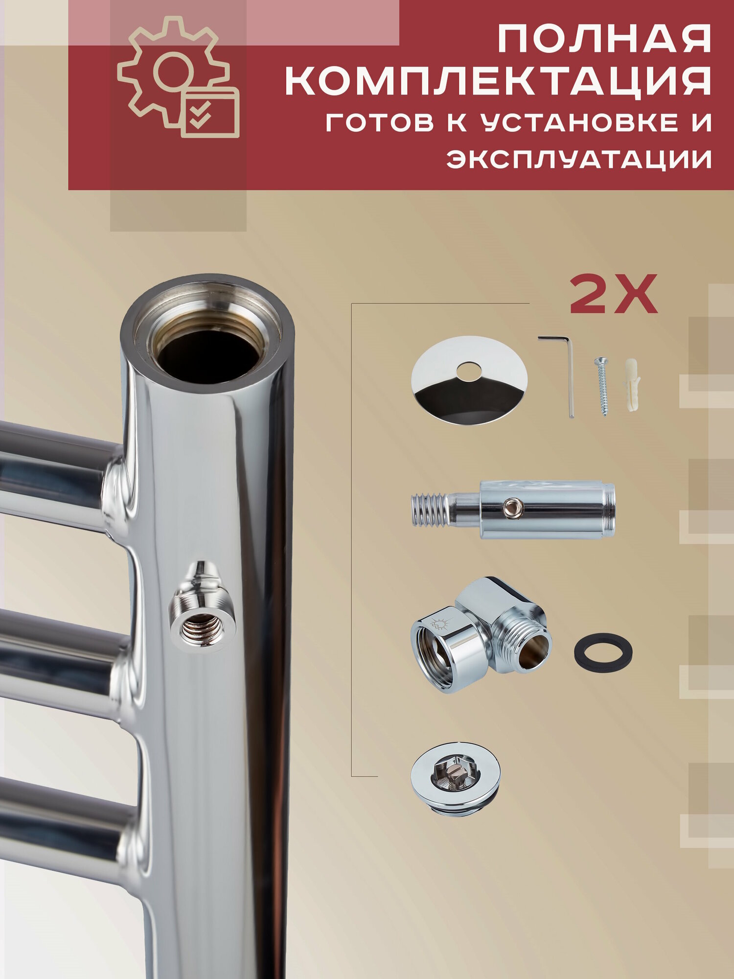 Полотенцесушитель водяной Vimarr Saturn PSV-70VMRS58Cr 500х800 лесенка, с фитингами в комплекте, хром информация: