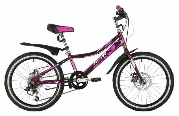 Детский велосипед NOVATRACK 20" ALICE 6.D пурпурный, стальная рама, 6 скор., Shimano TY21/Microshift TS38, диск информация: