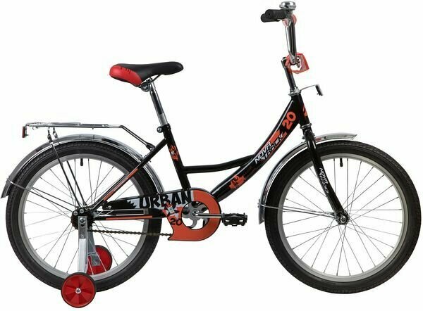 Детский велосипед NOVATRACK 20" URBAN чёрный, защита А-тип, тормоз нож, крылья и багажник хром информация: