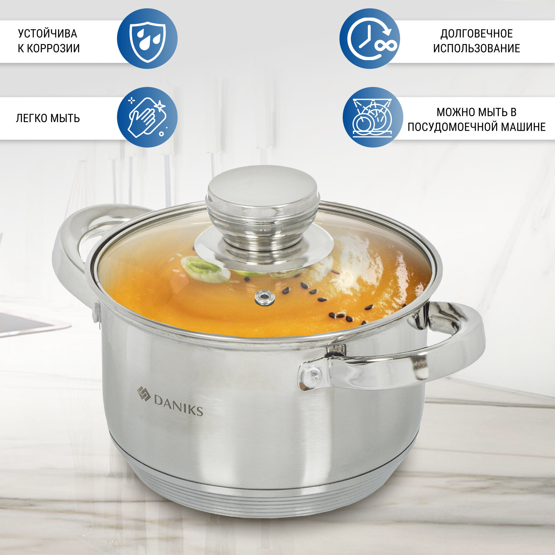 10 цен на Кастрюля нержавеющая сталь, 2 л, с крышкой, Daniks, Стандарт-PR, SD-16-2