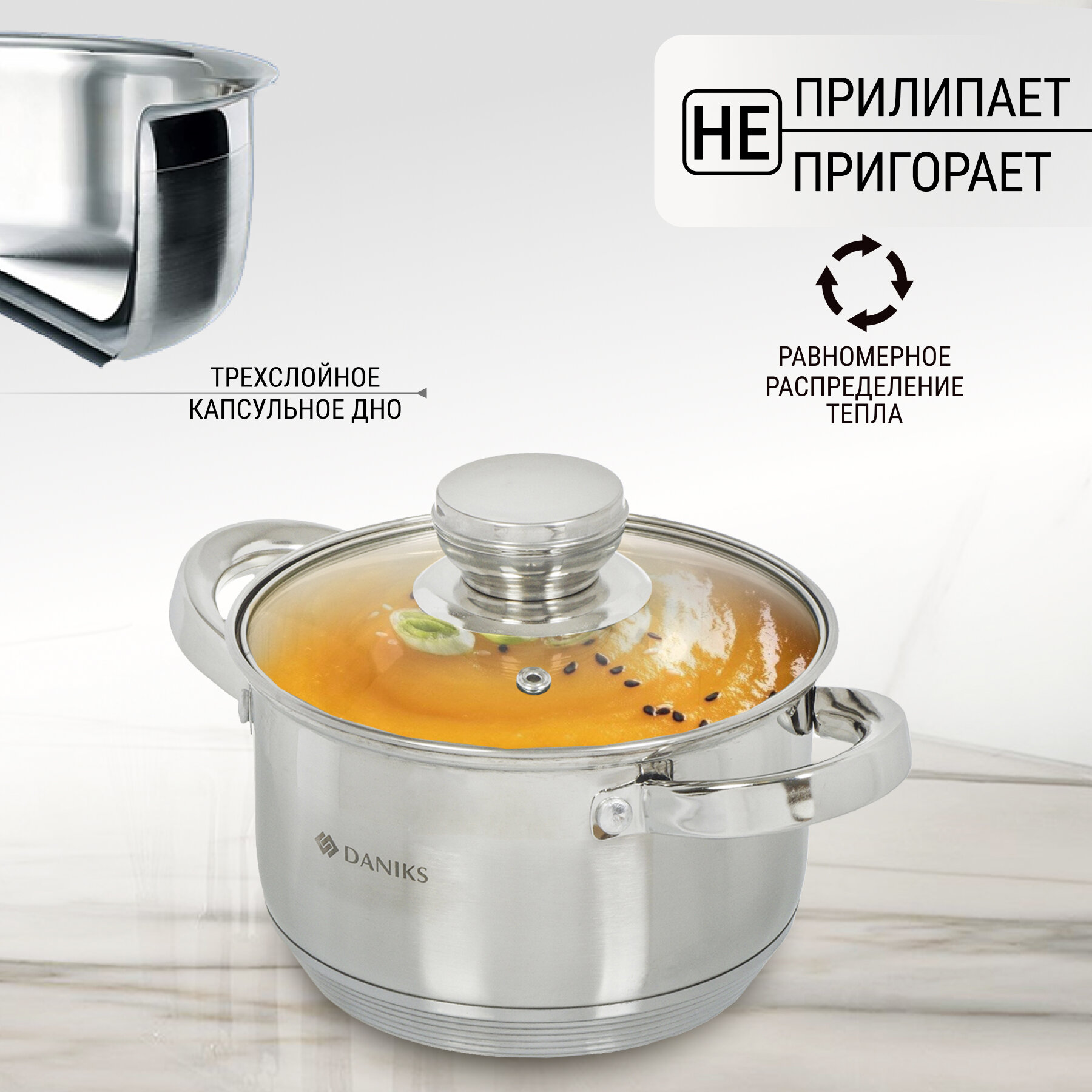 Кастрюля нержавеющая сталь, 2.2 л, с крыш, Daniks