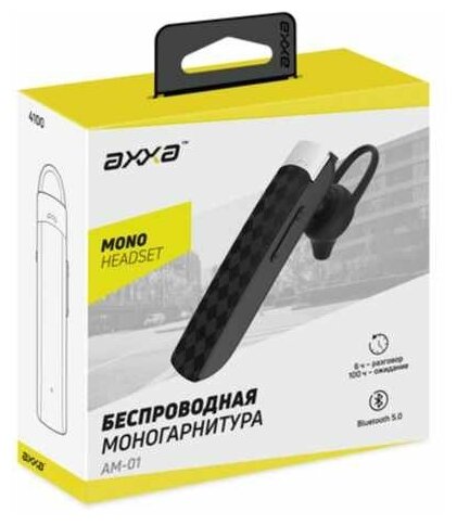 Беспроводная моногарнитура AM-01, BT 5.0, 100 мАч, чёрный, AXXA информация: