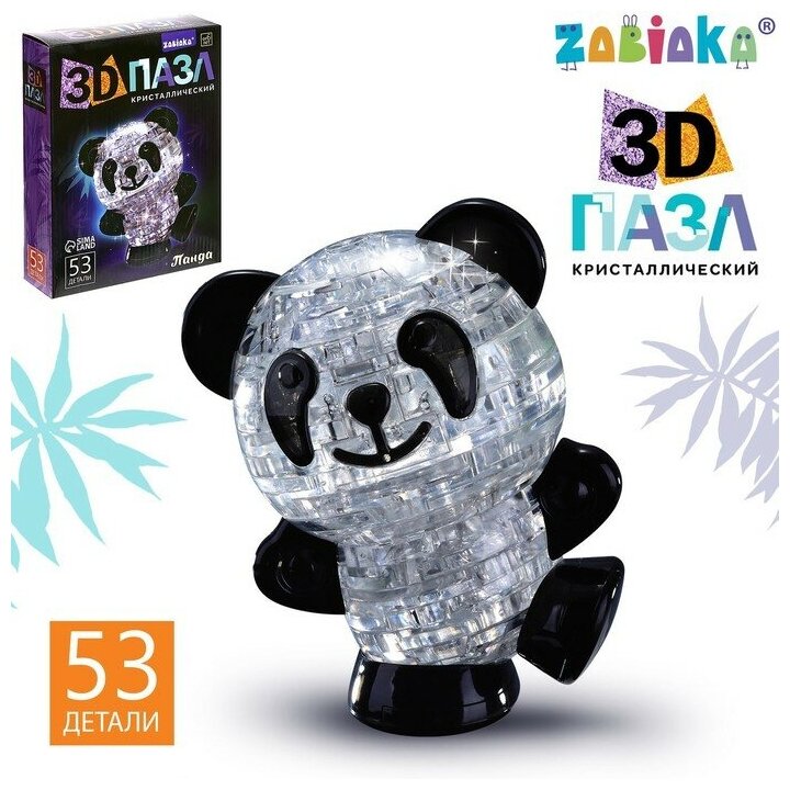 ZABIAKA 3D пазл «Панда», кристаллический, 53 детали, цвета микс
