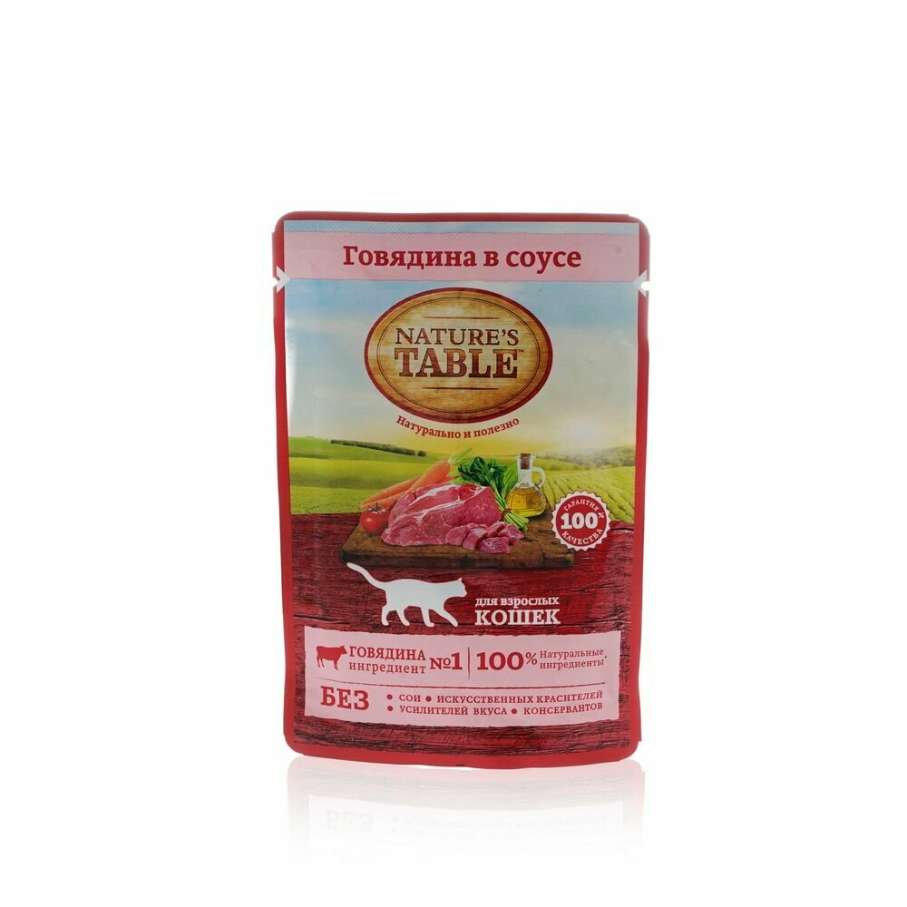 Natures Table Паучи для кошек с говядиной в соусе 101748011017480110245059 0,085 кг 25343 (26 шт)