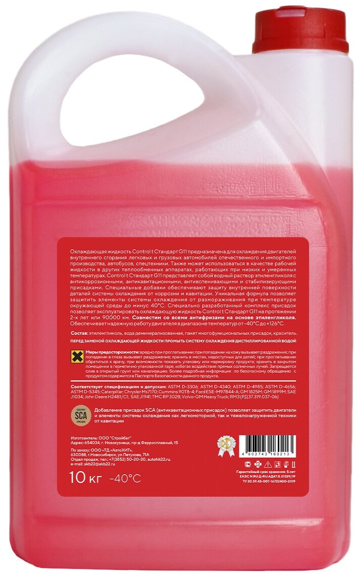 Антифриз Control T G11 красный 10кг с лейкой информация: