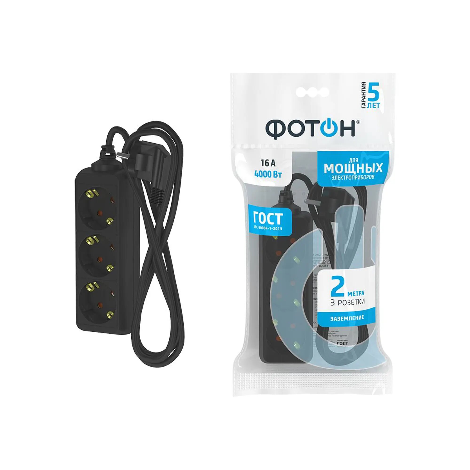 Отзывы на Сетевой удлинитель фотон 16-23Е, 2м, 3 розетки, 16А, с заземлением, серный 22722 15949175