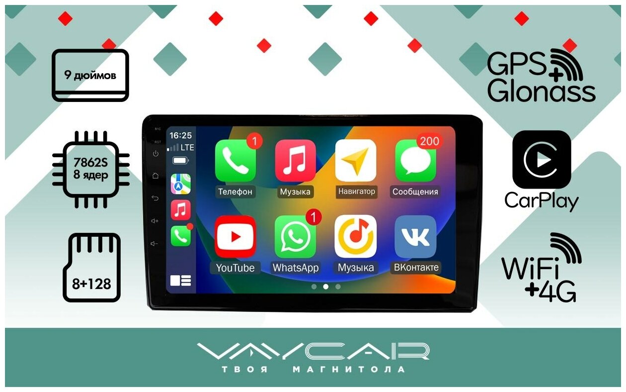Магнитола Vaycar 09VO4 для NISSAN Almera 2012 - 2019 (Андроид, 4+64, 8 ядер, WiFi, BT, 4G, GPS, QLED 9")