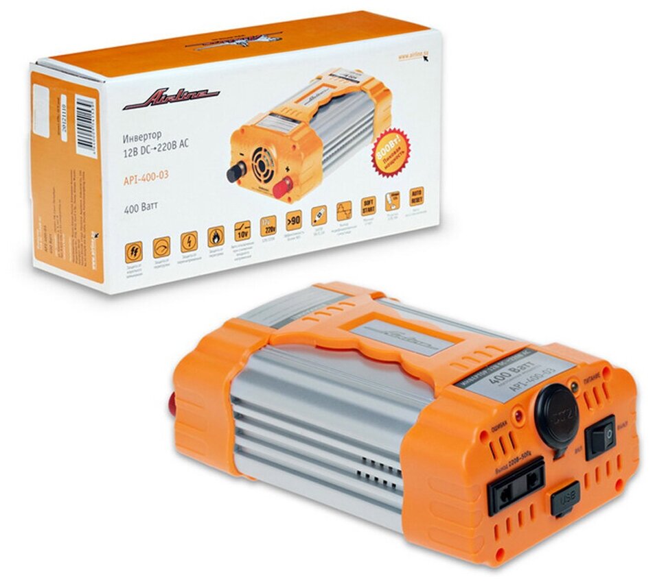 Преобразователь напряжения (инвертор) 12В на 220В "AIRLINE" (400 Вт) информация: