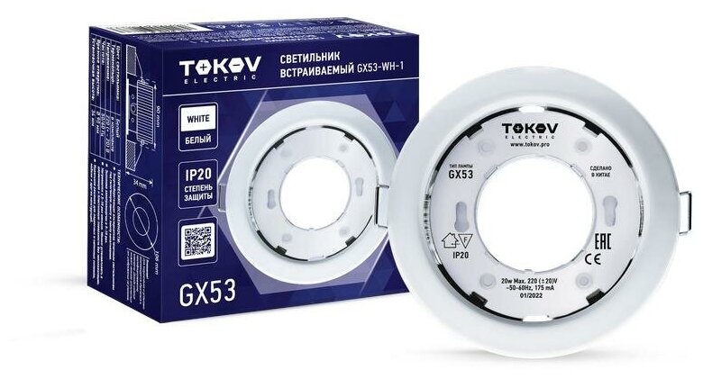 Светильник GX 53-WH-1 106х48мм бел. металл+пластик TOKOV ELECTRIC TOK-GX53-WH-1 информация: