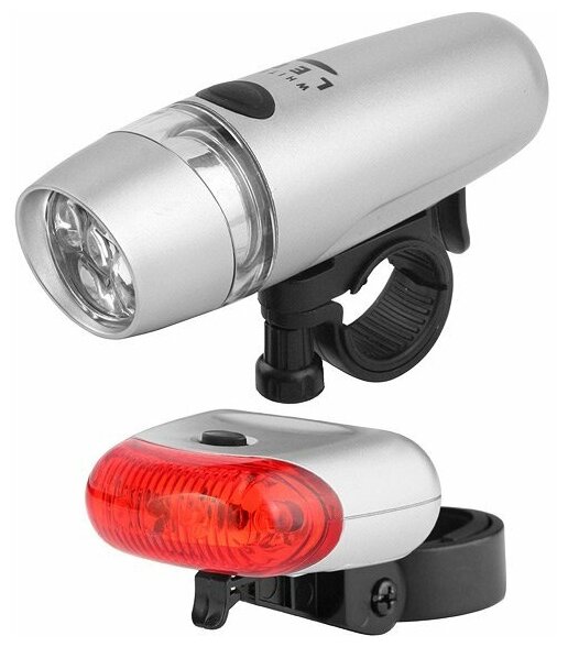 Фонари передний и задний Jy-813a 5 и 5 светодиодов 3 режима серебр., арт.560045 560045