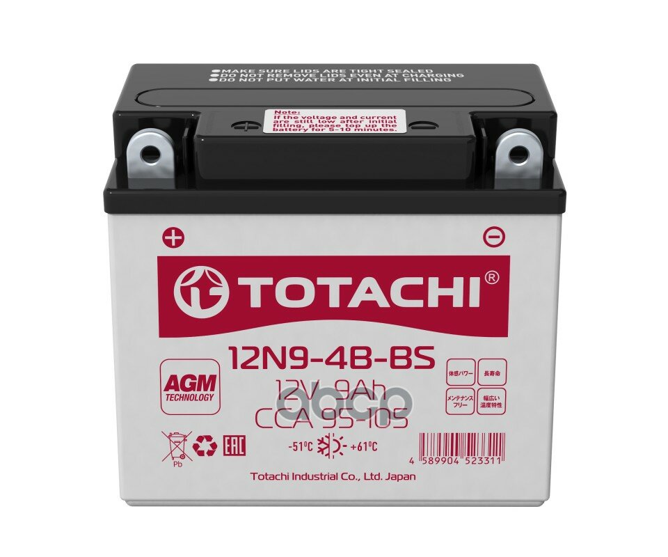 Акб Totachi Moto 12n9-4b-Bs 9 А/Ч R Agm TOTACHI90009 информация: