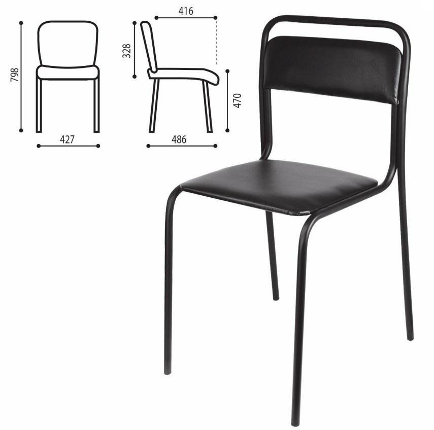 Стул для столовых, кафе, дома "Вереск", черный каркас, кожзам черный, СМ7/6-05 К-01, 1 шт.