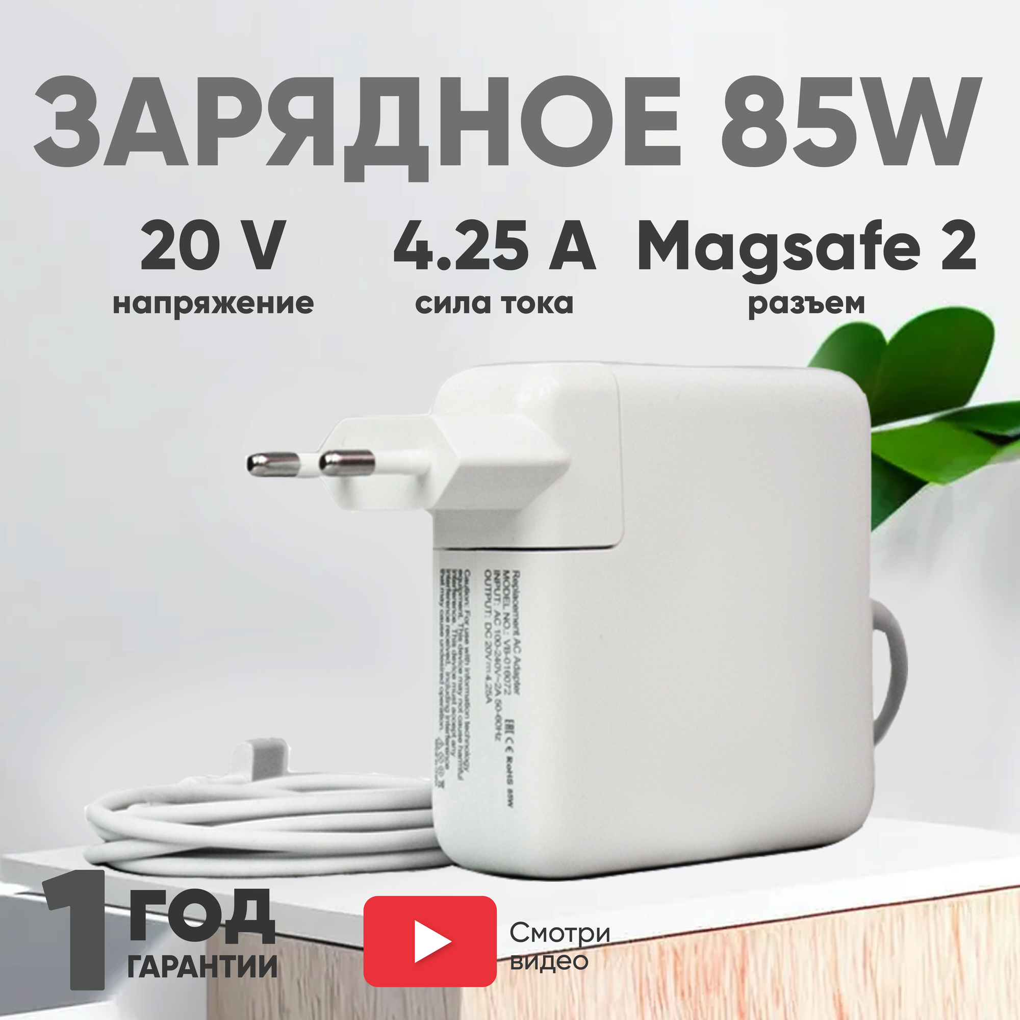 10 цен на Зарядное устройство (блок питания/зарядка) для ноутбука Apple MacBook A1398, 20В, 4.25А, 85Вт, MagSafe2