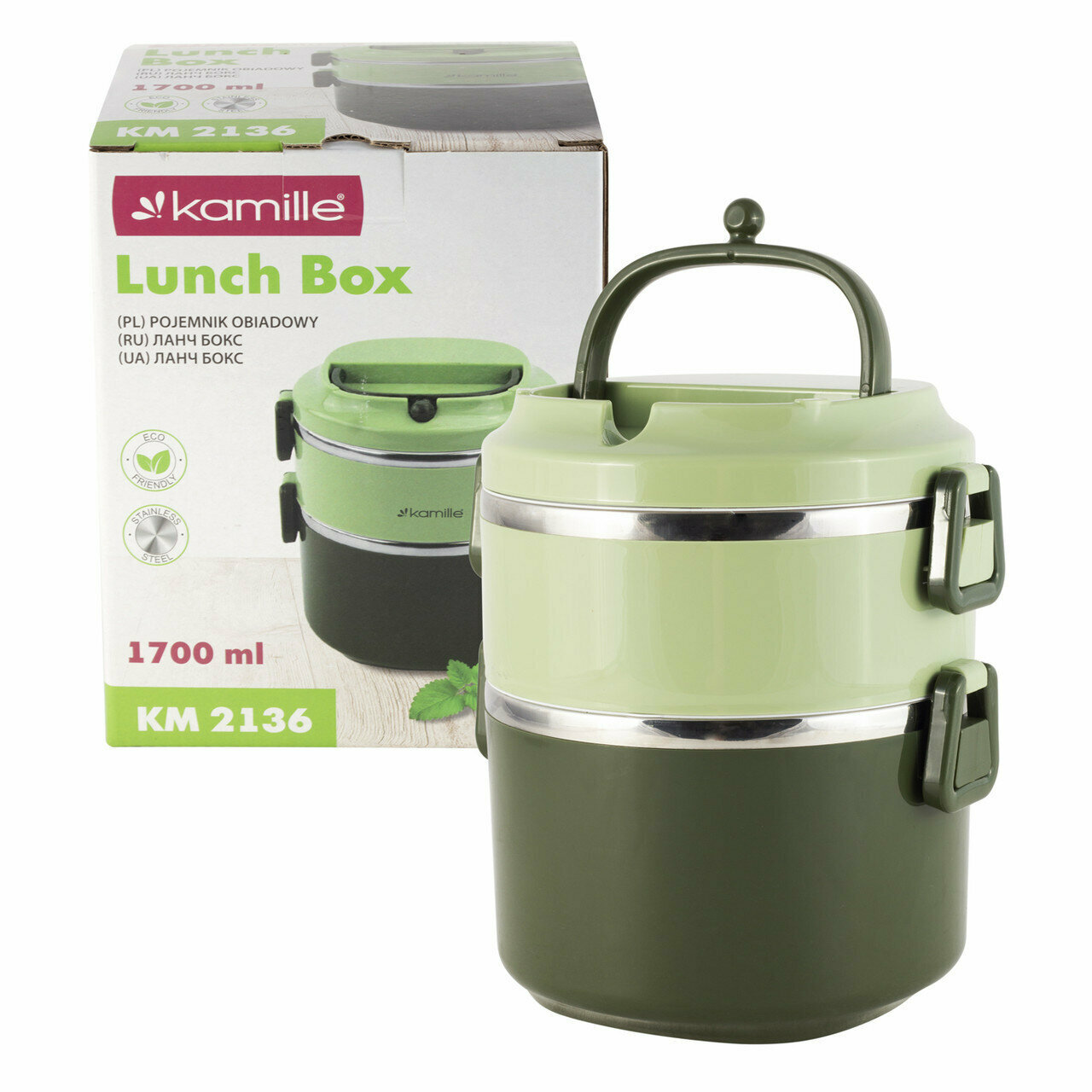10 цен на Ланч бокс двойной 1700 мл. Kamille KM 2136 (пластик, нержавеющая сталь) (36 / зеленый)