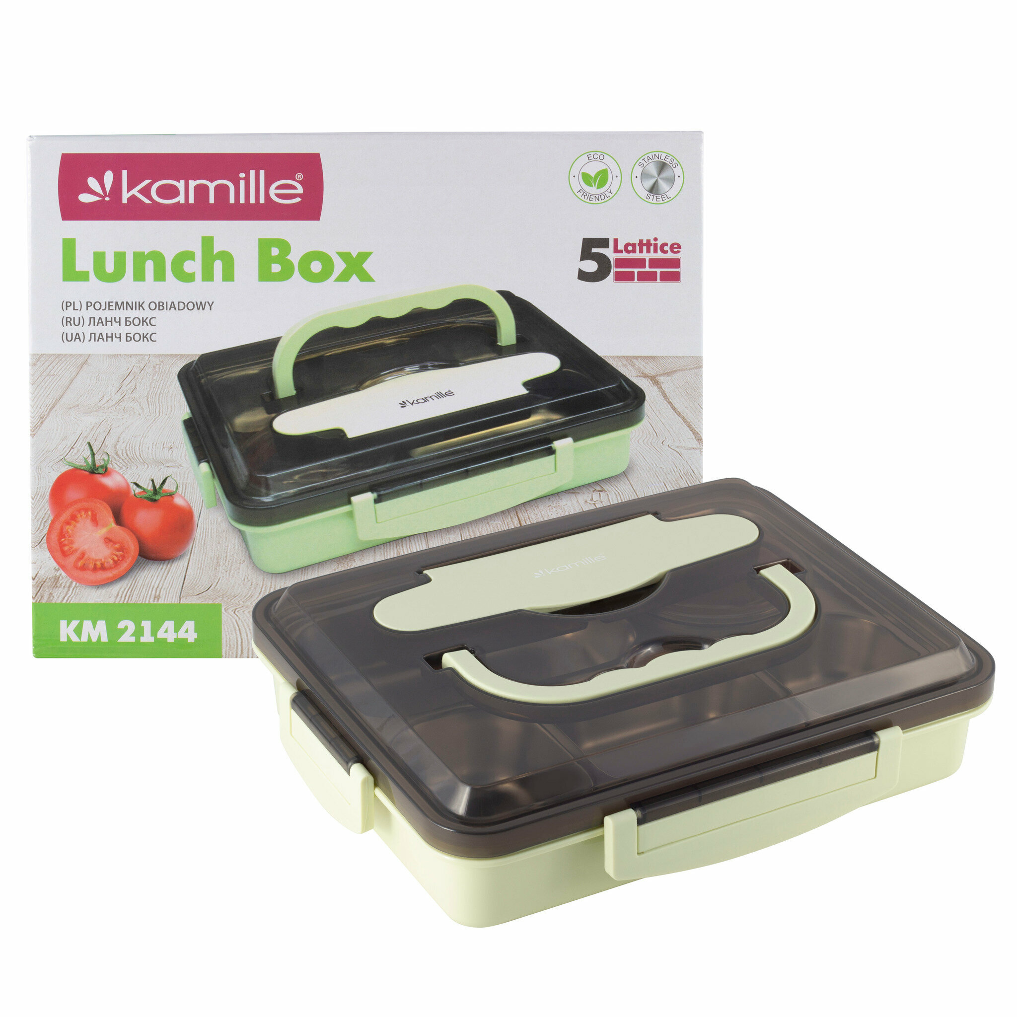 Ланч бокс 1000 мл. Kamille KM 2144 (пластик, нержавеющая сталь) (36 / зеленый) информация: