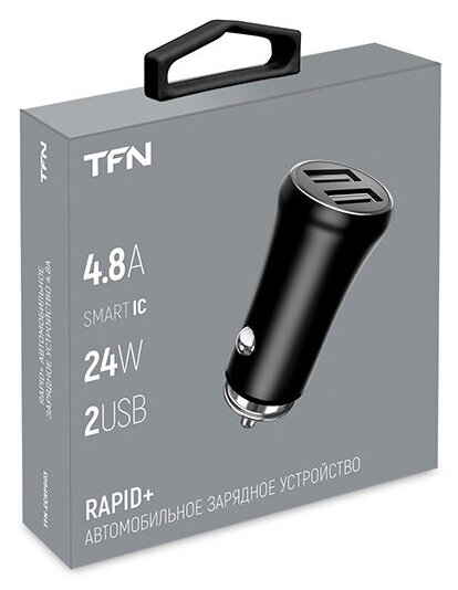 Автомобильное зарядное устройство TFN Rapid+ 2xUSB 4.8A 24W Black информация: