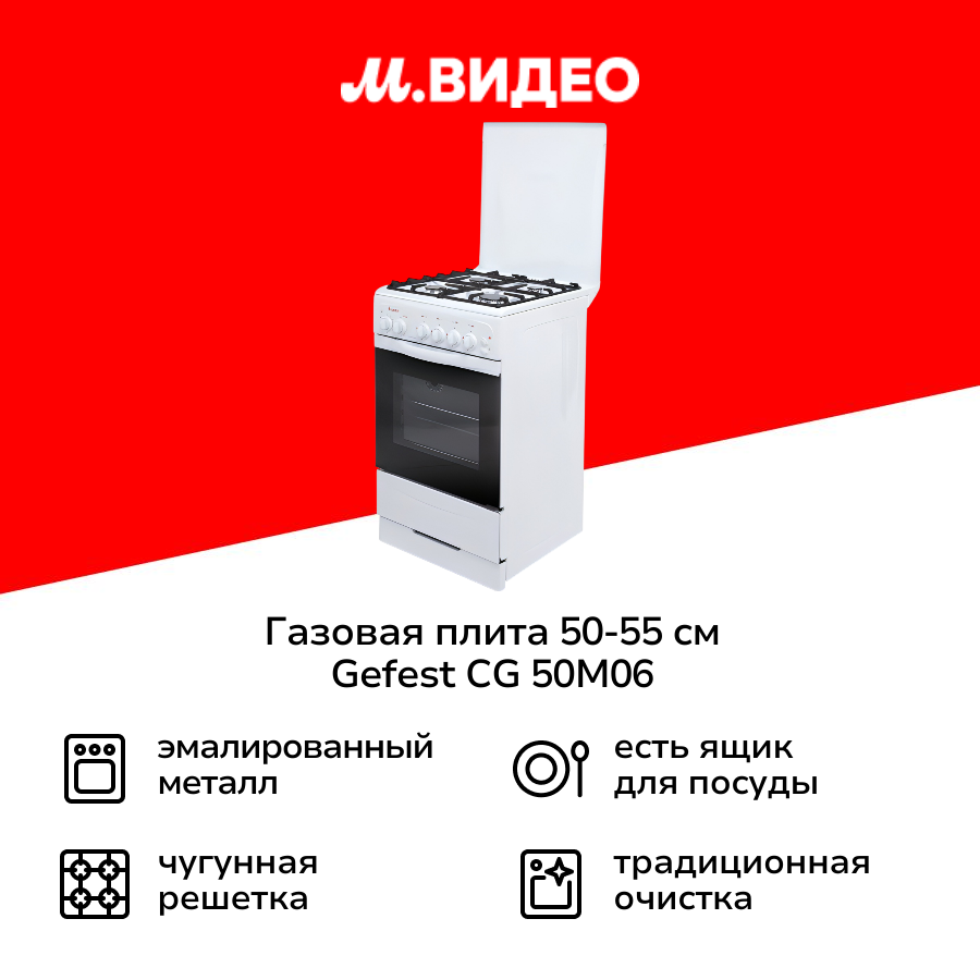Газовая плита (50-55 см) Gefest CG 50M06 информация: