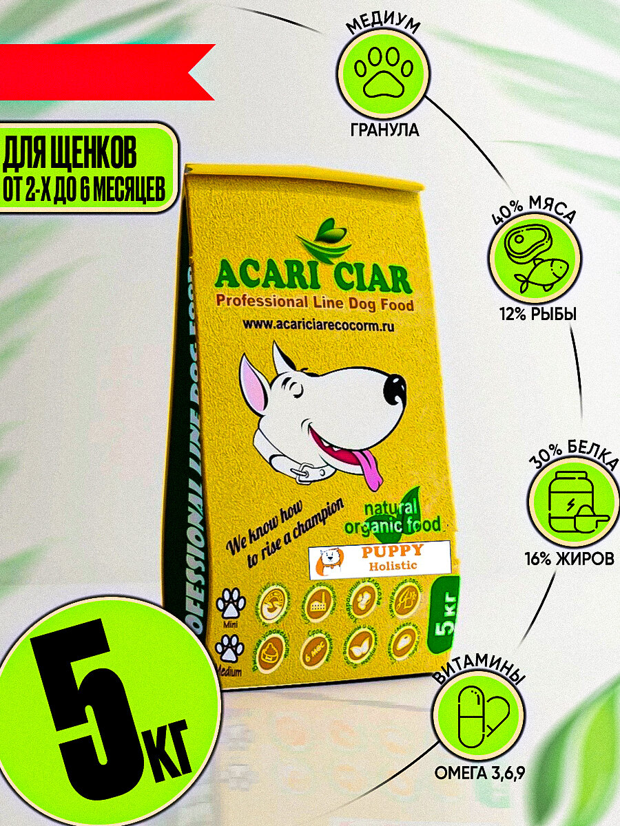 Сухой корм для собак ACARI CIAR Puppy Holistic (медиум гранула) 15 кг (для мелких и средних пород) 7 575 ₽