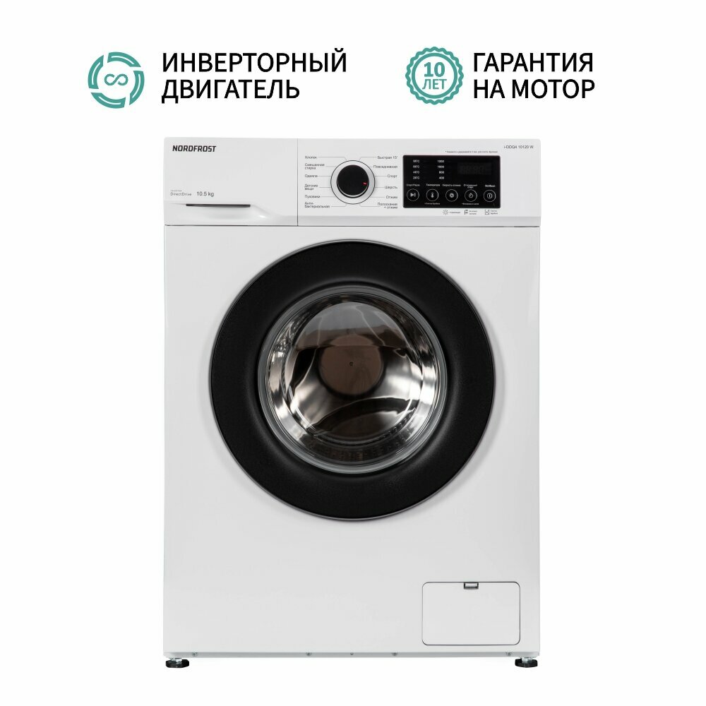 Стиральная машина NORDFROST i-DDQ4 10120 W, 10,5 кг , 70 л объем, инвертор, прямой привод,цвет белый