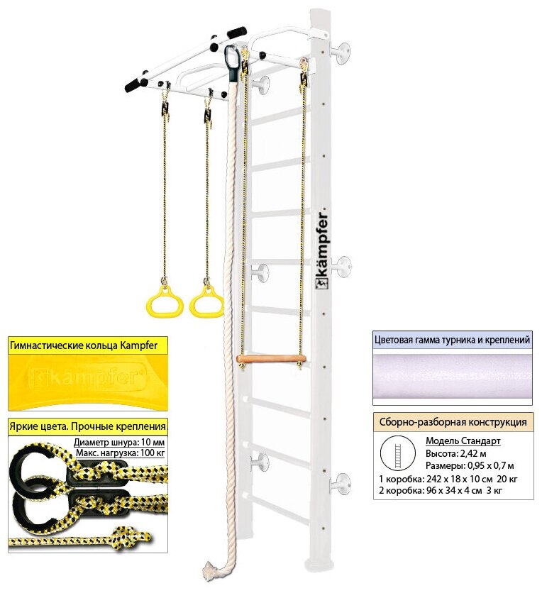 Шведская стенка Kampfer Helena Wall, №6 Жемчужный Стандарт белый турник информация: