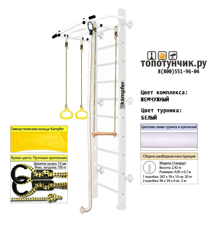 Шведская стенка Kampfer Helena Wall, №6 Жемчужный Стандарт белый турник
