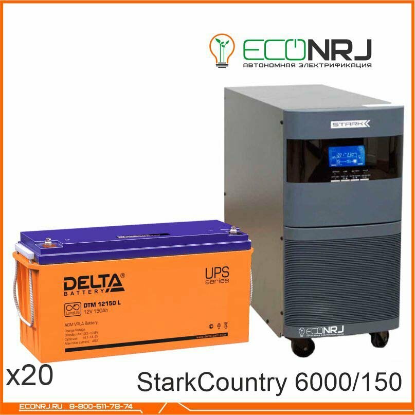 Инвертор (ИБП) Stark Country 6000 Online, 12А + АКБ Delta DTM 12150 L информация: