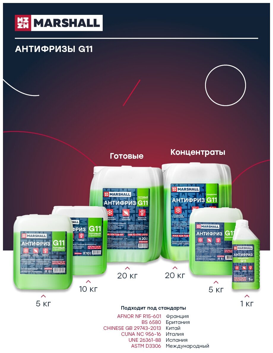 MARSHALL M9821020 Антифриз G11, концентрат 11, зеленый, канистра 20 кг. 12 184 ₽