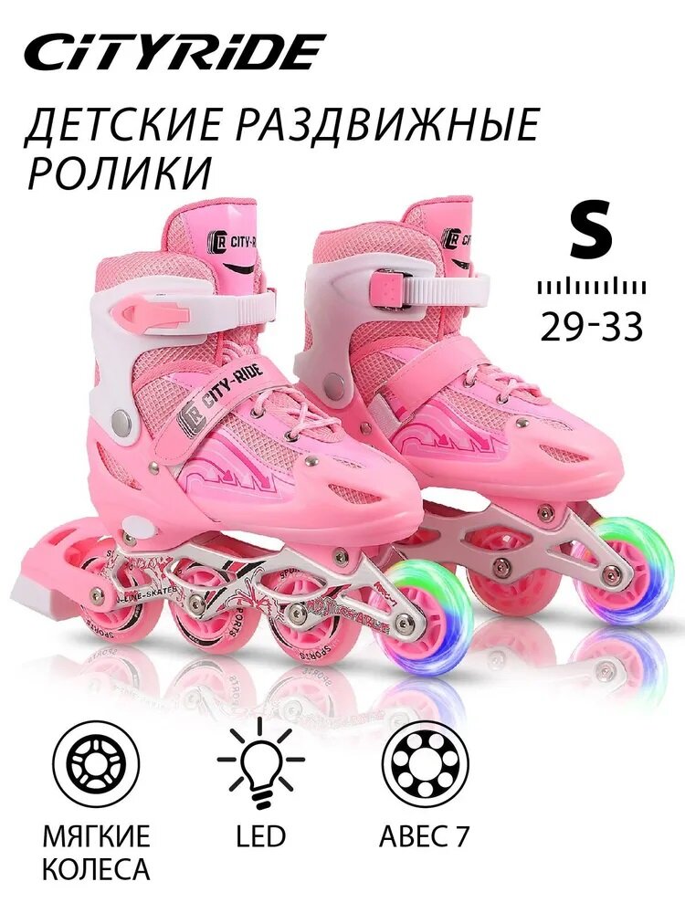 Роликовые коньки детские CITYRIDE, PU колеса/первое светится, ABEC 7, размер S (29-33), раздвижные, JB8800084/S(29-33) 5 110 ₽