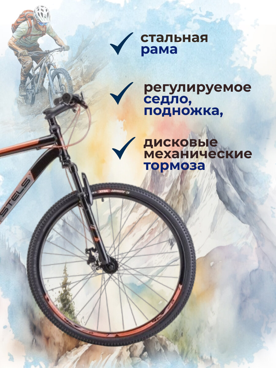 Велосипед STELS NAVIGATOR 700 V 27,5" Рост 21" черный матовый Сталь 21ск Ободные V-типа механ 1 амм-