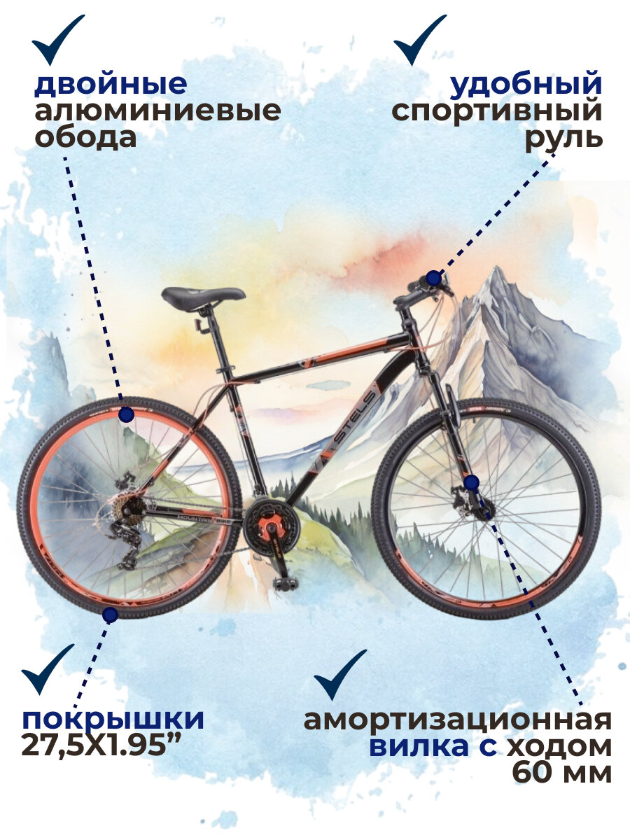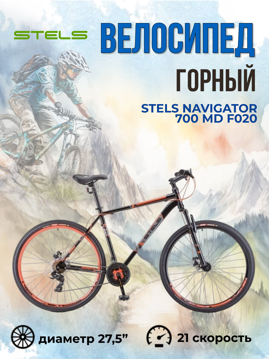Велосипед горный Stels Navigator 700 MD F020 рама 17,5" чёрно-красный колеса 27.5" LU096006 информация: