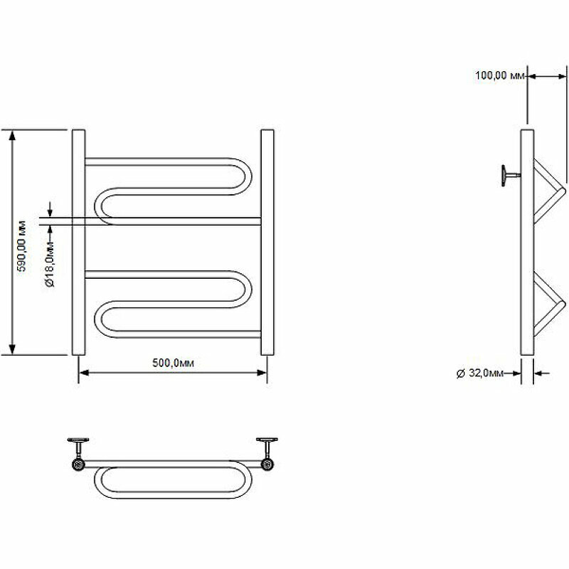 Полотенцесушитель Омега (Ширина:500, Высота:1000)