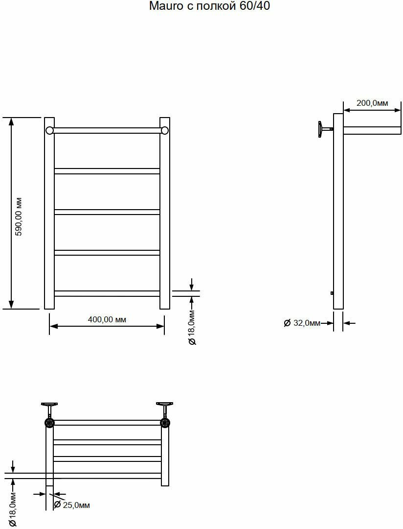 Полотенцесушитель водяной Aquanet Mauro 60x40 с полкой информация: