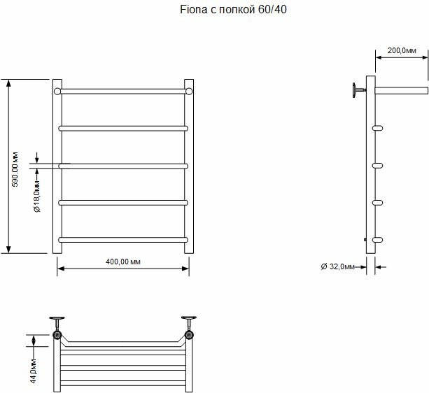 Полотенцесушитель электрический Aquanet Fiona 60х40 птэн с полкой информация: