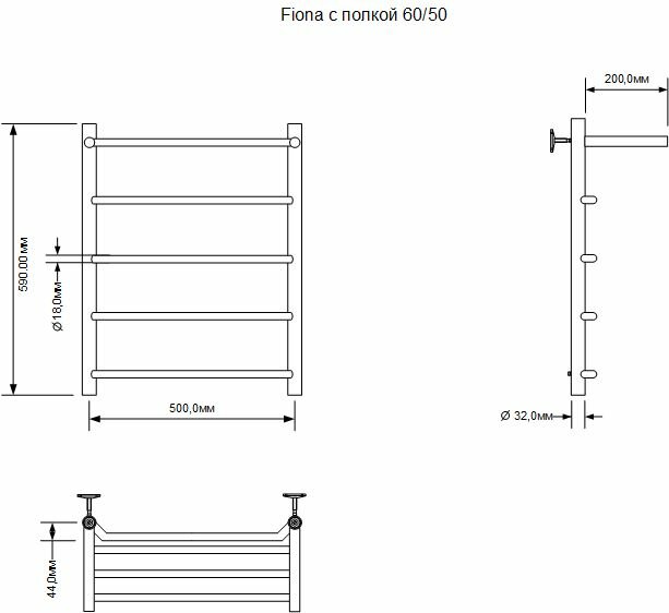 Полотенцесушитель электрический Aquanet Fiona 60х50 птэн с полкой информация: