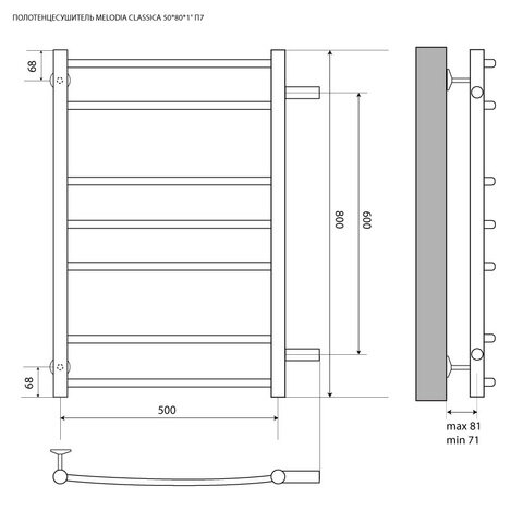 Водяной полотенцесушитель Melodia della vita Classica 500*800мм 1" П7 2*3*2 м/о 60 бок.подкл. белый MTRCA5080wt информация: