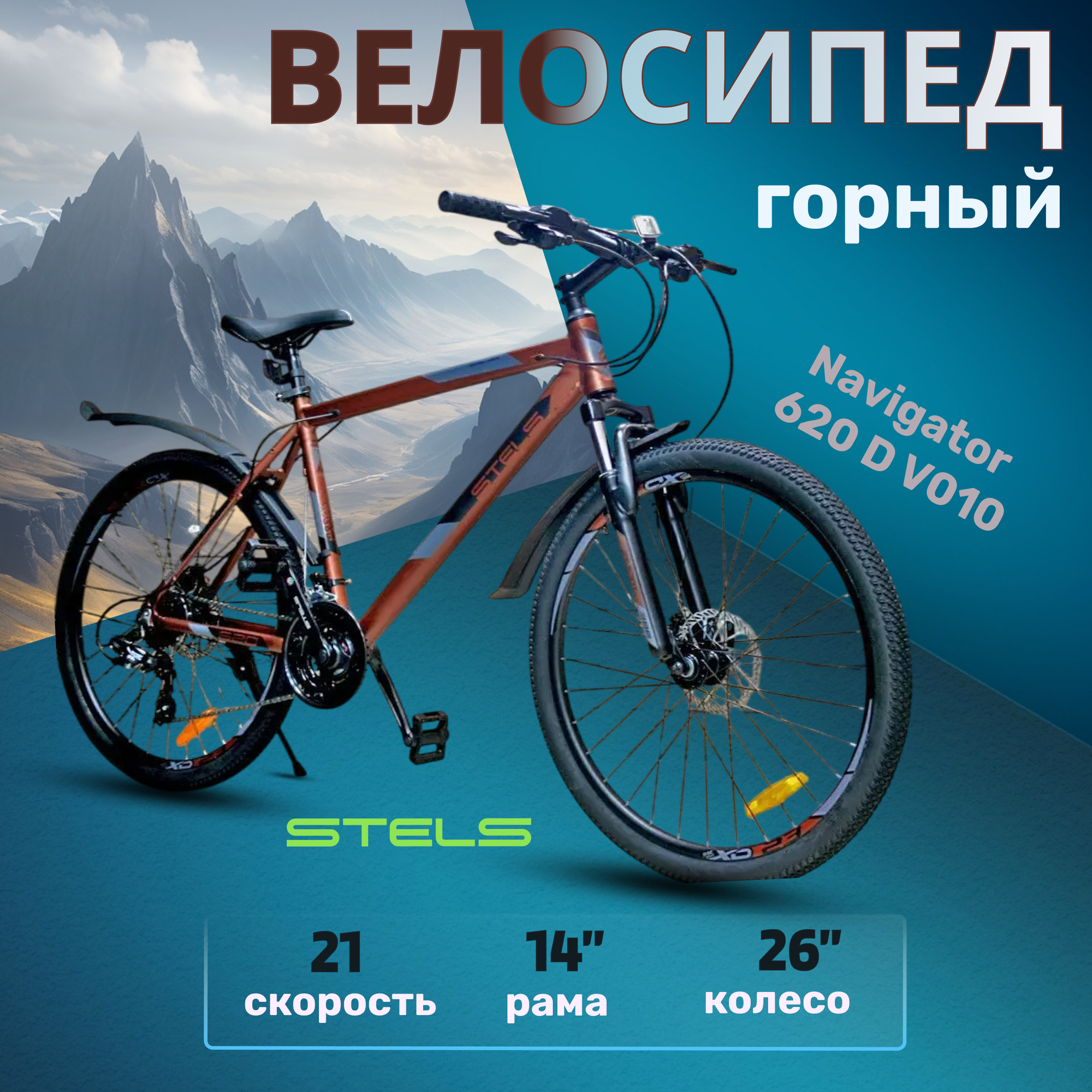 Велосипед двухколесный горный Stels Navigator 620 D V010 коричневый 21 скорость, рама 14", колеса 26" информация: