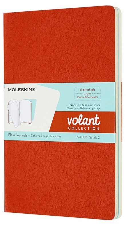 Блокнот Moleskine VOLANT QP723F16B24 Large 130х210мм 96стр. нелинованный мягкая обложка оранжевый/голубой (2шт) информация: