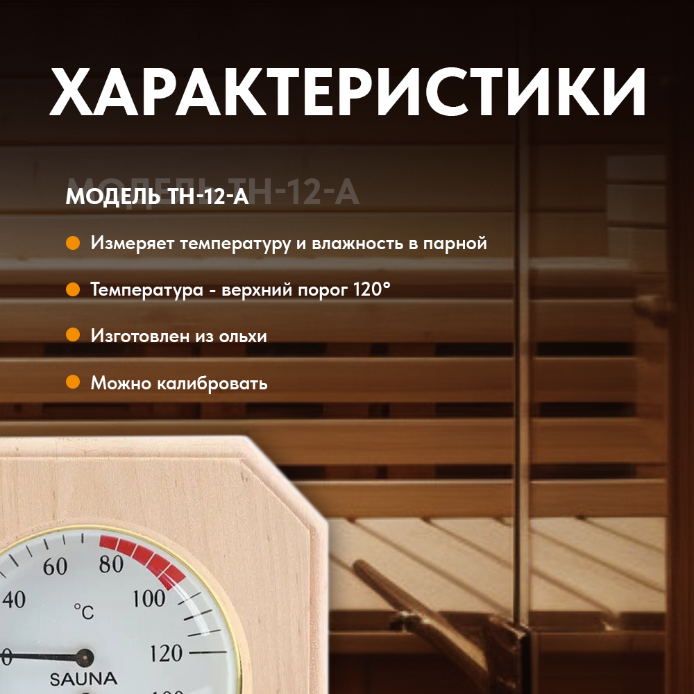 Термогигрометр для бани и сауны, ТН-20-A, ольха, от 0°С до +120°С 3 930 ₽