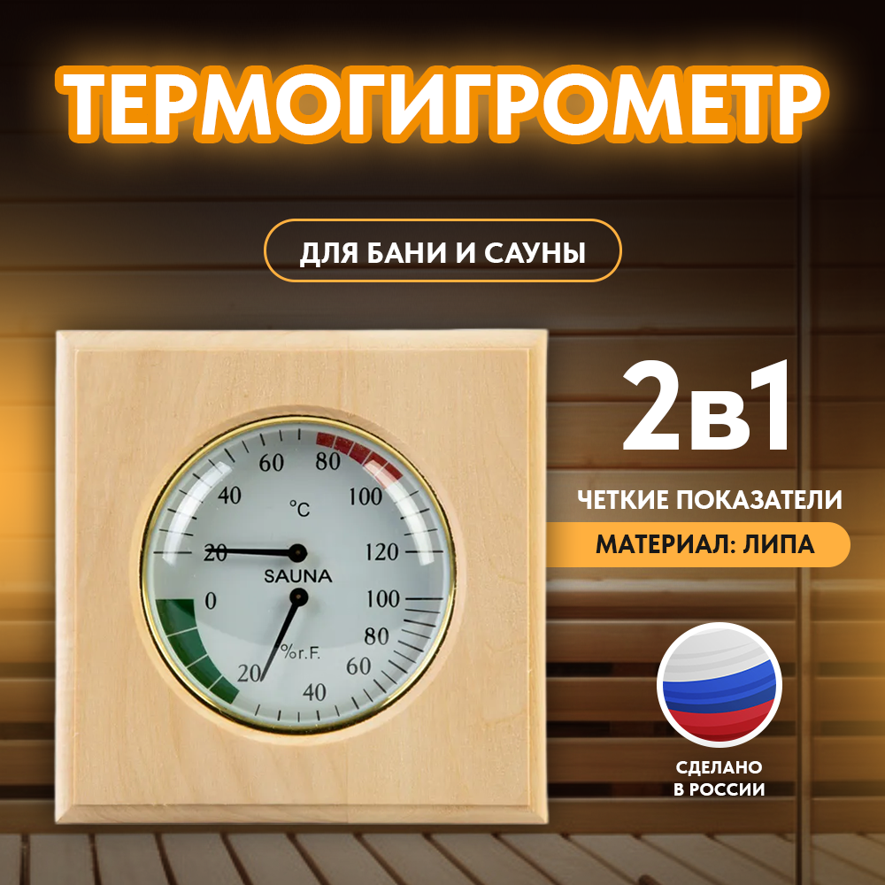 Термогигрометр для бани и сауны, ТН-20-L, липа, от 0°С до +120°С 3 930 ₽