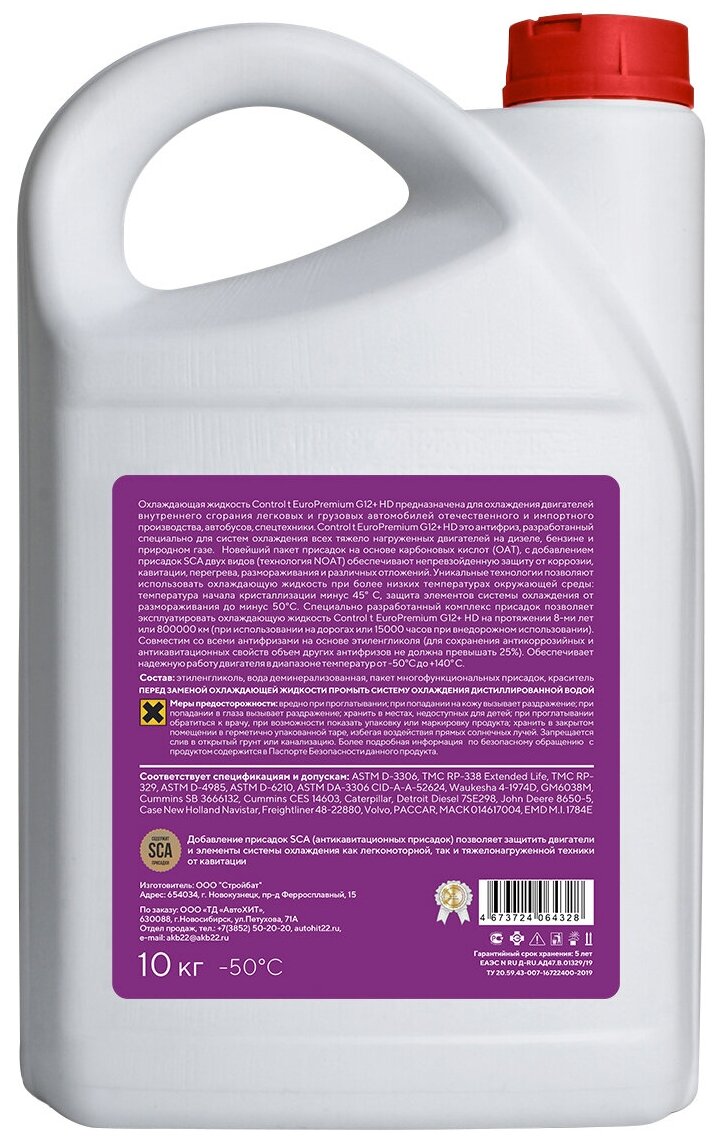Антифриз Control T Europremium G12+ HD фиолетовый 10кг информация: