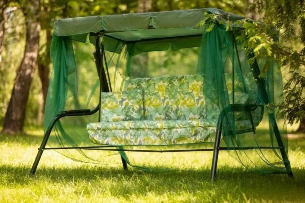 Трехместные садовые качели с мягким сиденьем (170х110х153 см), для комфортного отдыха для всей семьи на природе, на даче, в загородном доме