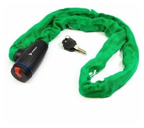 Замок велосипедный, трос стальной, с ключами 12х800мм, в пластиковой оболочке, зеленый