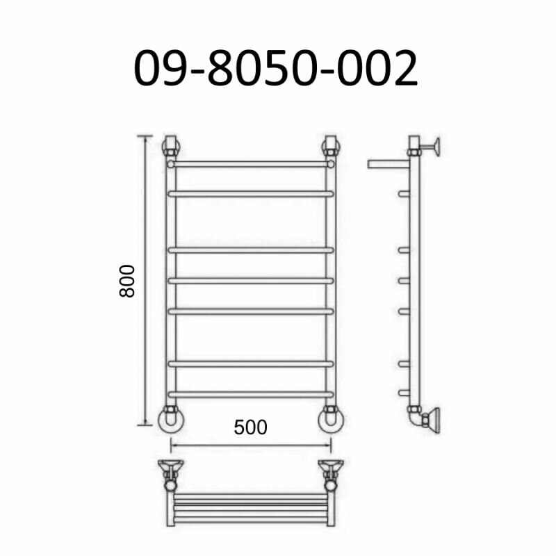 Полотенцесушитель Водяной узкий с полкой Di Kron, модель Premium-T 800х400 боковое подключение 50 см слева угловое