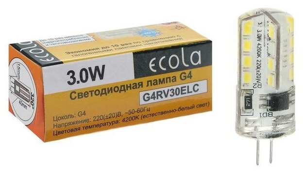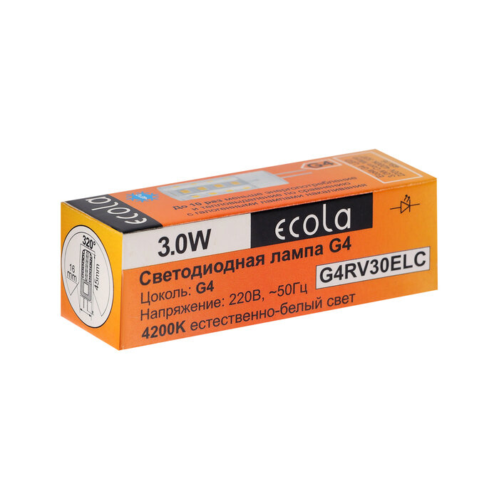 Лампа светодиодная Ecola, G4, 3 Вт, 4200 K, 320°, дневной белый информация: