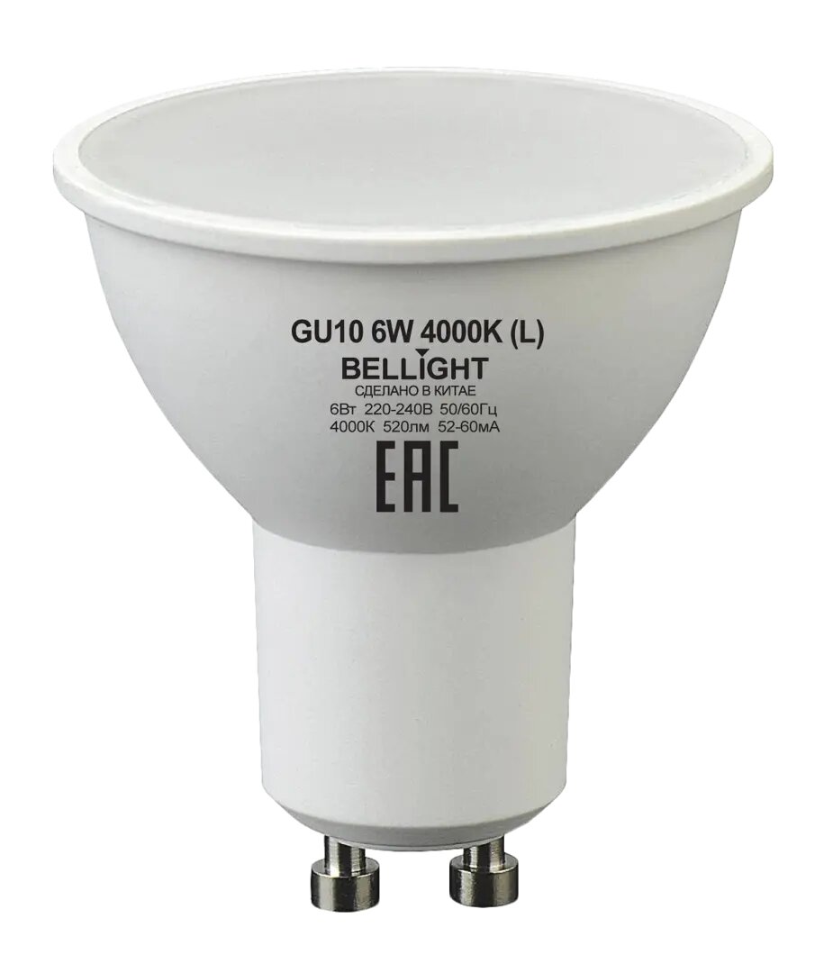 Лампа светодиодная Bellight GU10 220-240 В 6 Вт спот матовая 520 лм нейтральный белый свет информация: