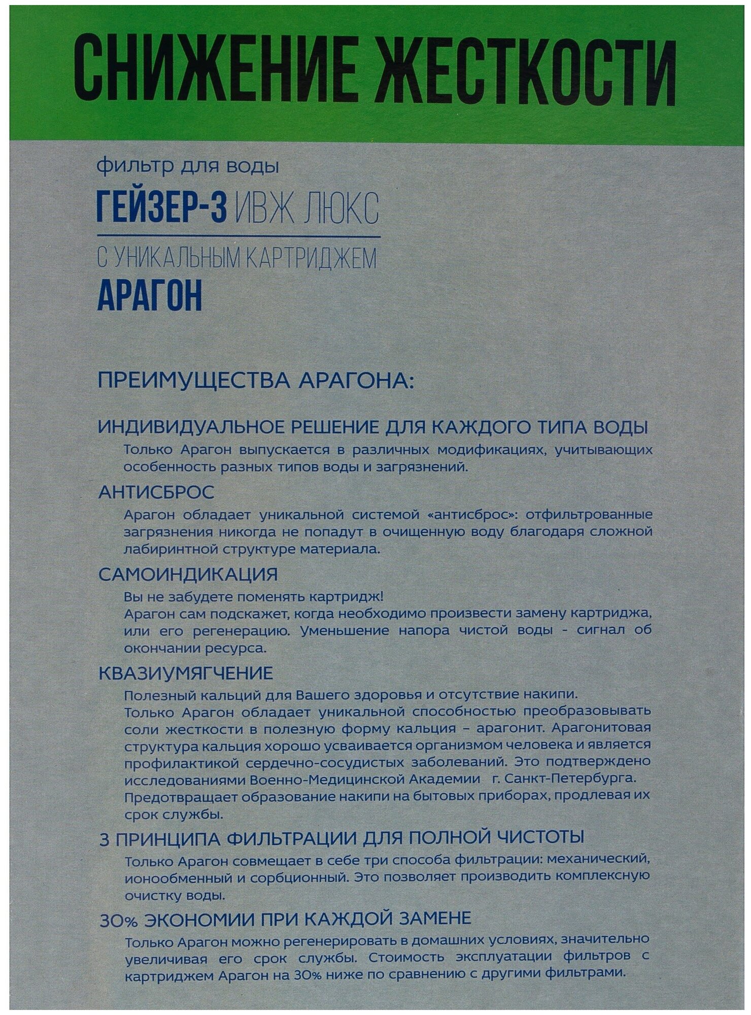 Система трёхступенчатая Гейзер 3-ИВЖ Люкс для воды нормальной жёсткости информация: