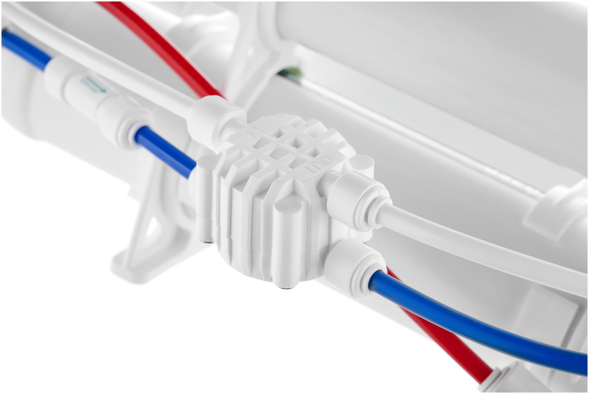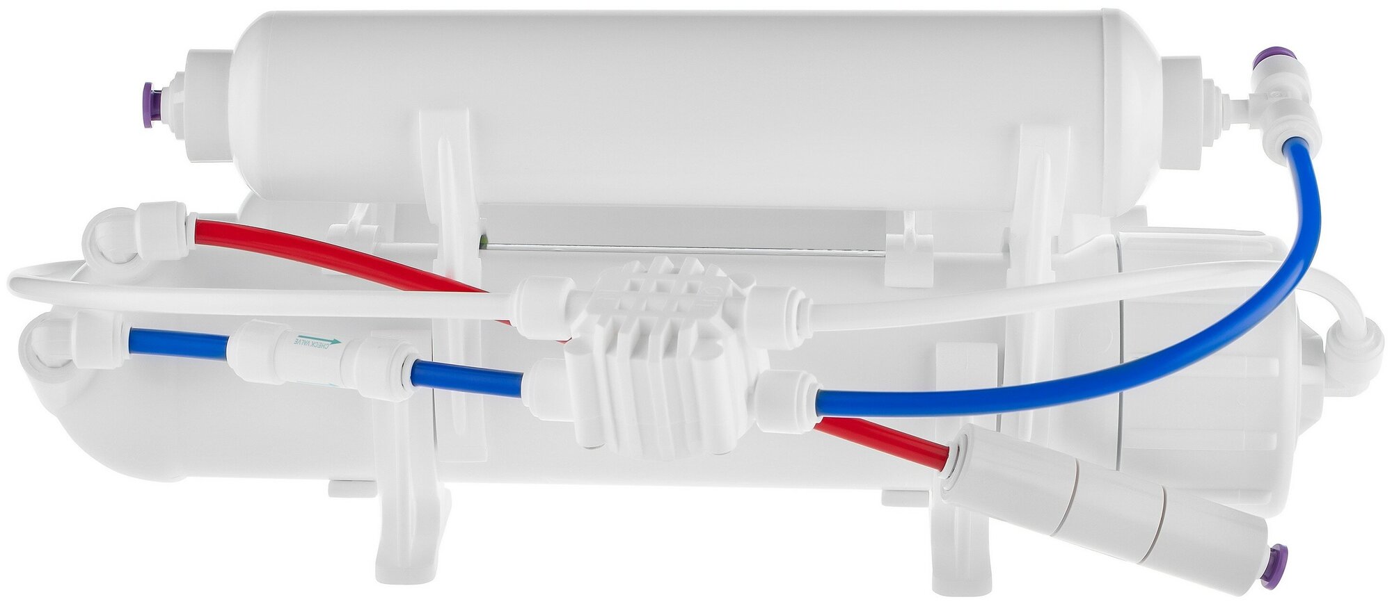 | Дополнительная информация | Комплектация: Модуль предочистки; Мембранный модуль; Угольный постфильтр; Ограничитель дренажного потока; Дренажный хомут; Тройник-адаптер; Трубки JG; Кран для чистой воды; Обратный клапан 2 шт.; Металлический накопительный бак 8 л (объем воды в накопительном баке составляет 40-70% его объема в зависимости от давления в подводящем водопроводе). |